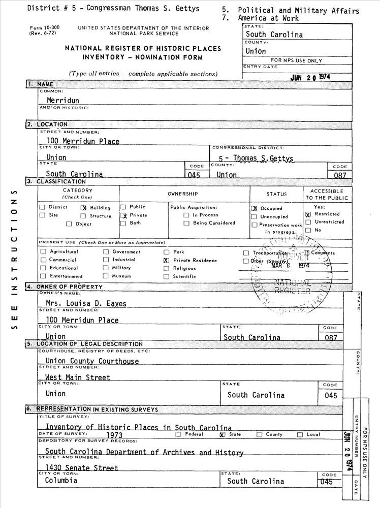 Union ; 100 Merridun Pl.