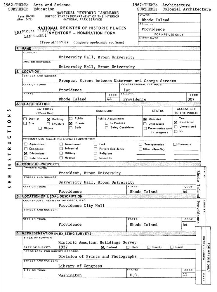 University Hall, Brown University