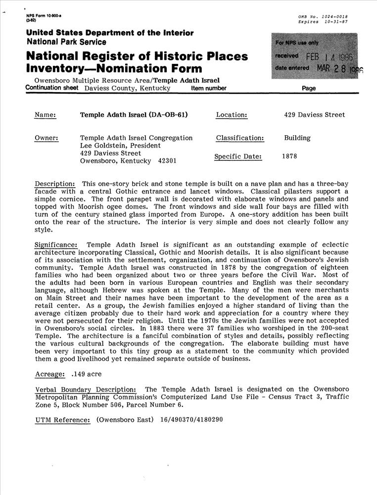 Owensboro ; 429 Daviess St.