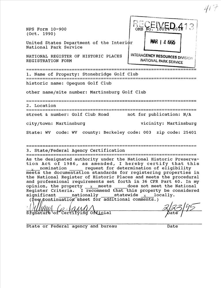 Martinsburg ; Golf Club Rd. E of Opequon Cr.