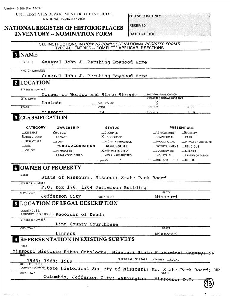 Pershing, Gen. John J., Boyhood Home