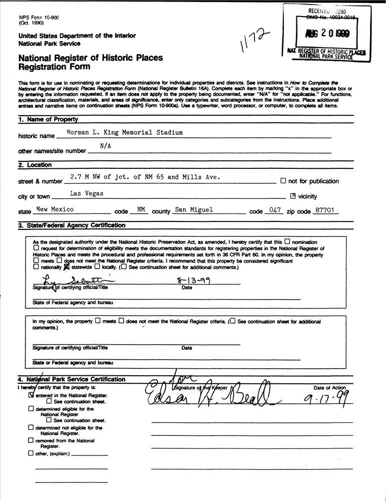 King, Norman L., Memorial Stadium