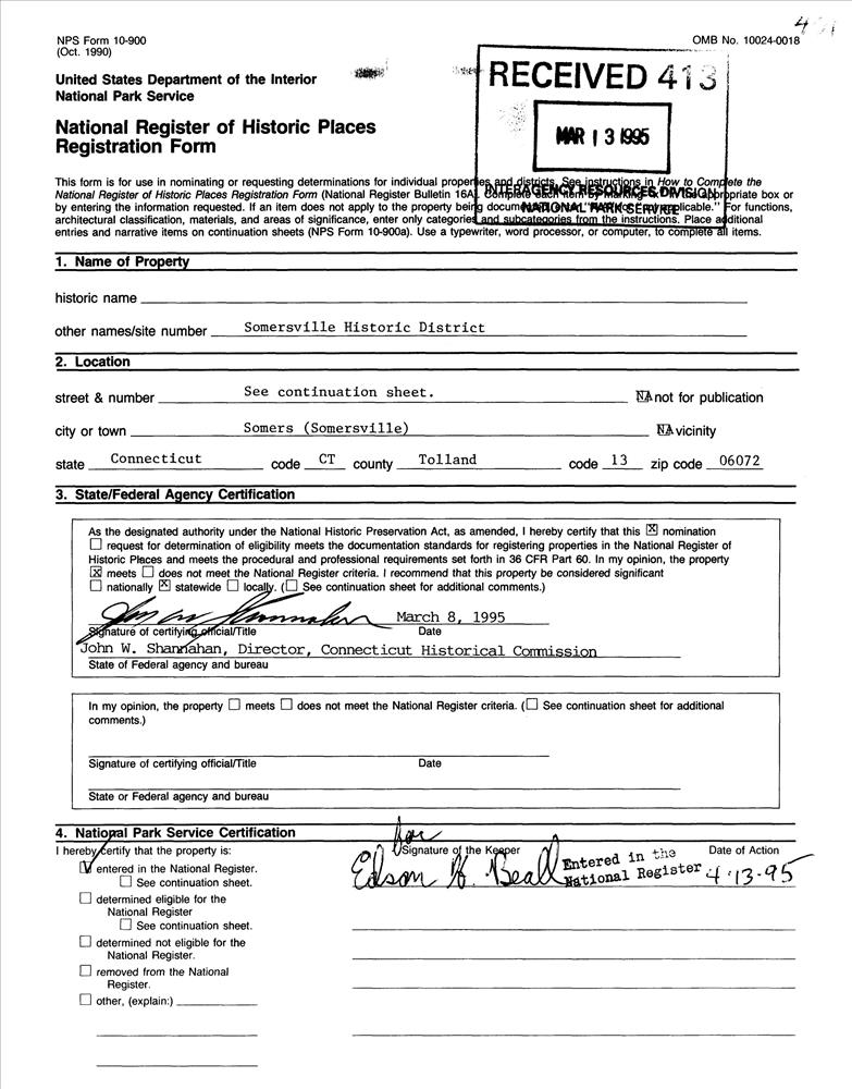 Somersville ; Roughly, along Main, Maple and School Sts., Pinney and Shaker Rd. and Quality Ave., Town of Somers