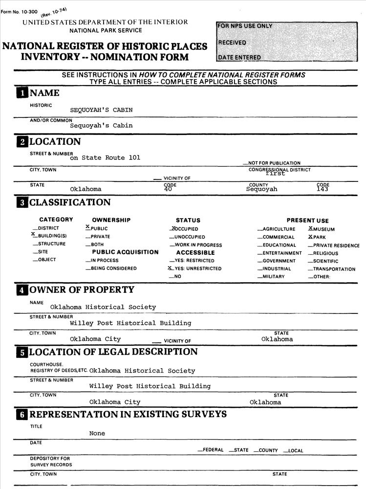 Akins ; OK 101, in Sequoyah's Cabin State Park