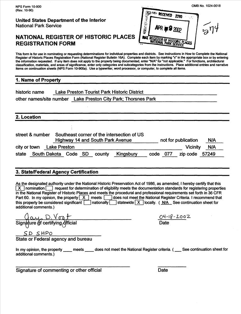 Lake Preston Tourist Park Historic District