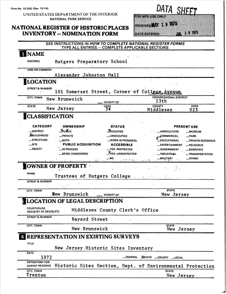 New Brunswick ; 101 Somerset St.