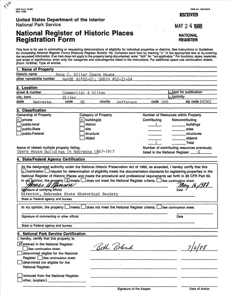 Opera House Buildings in Nebraska 1867-1917 MPS