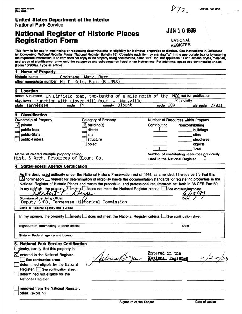 Maryville ; Binfield Rd., 0.2 mi. N of Clover Hill Rd.