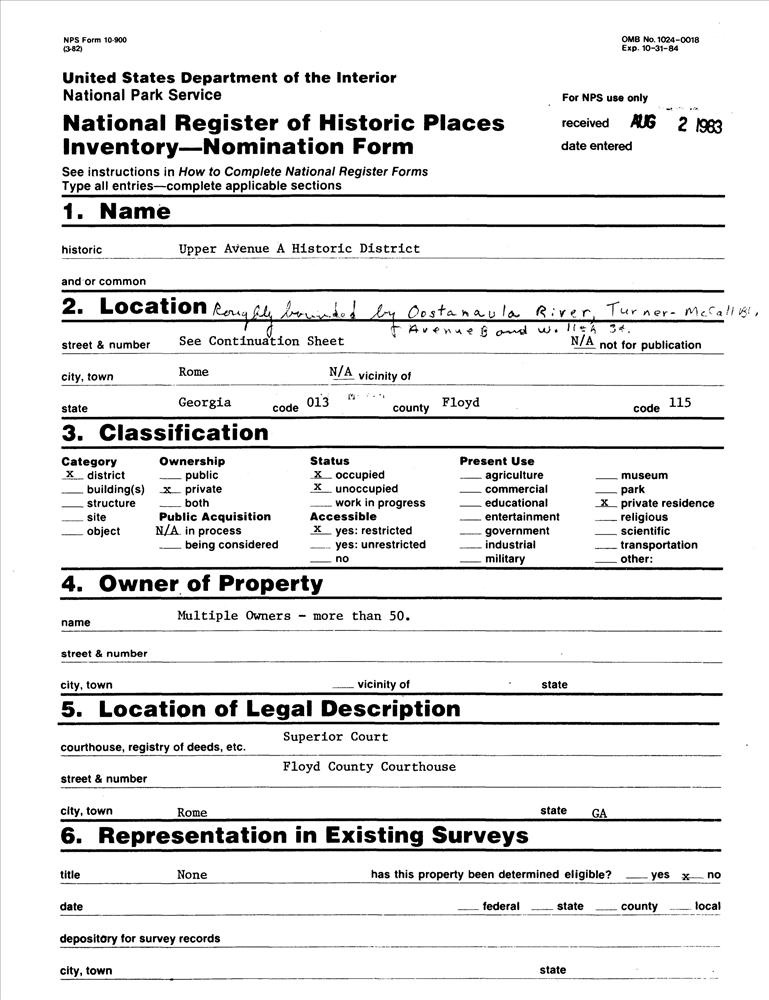 Rome ; Roughly bounded by Oostanaula River, Turner-McCall Blvd., Avenue B and W. 11th St.