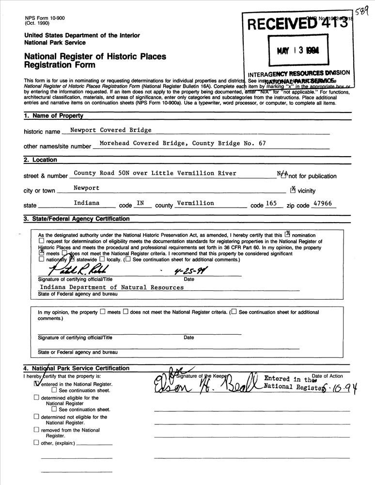 Newport ; Co. Rd. 50N over Little Vermillion R.