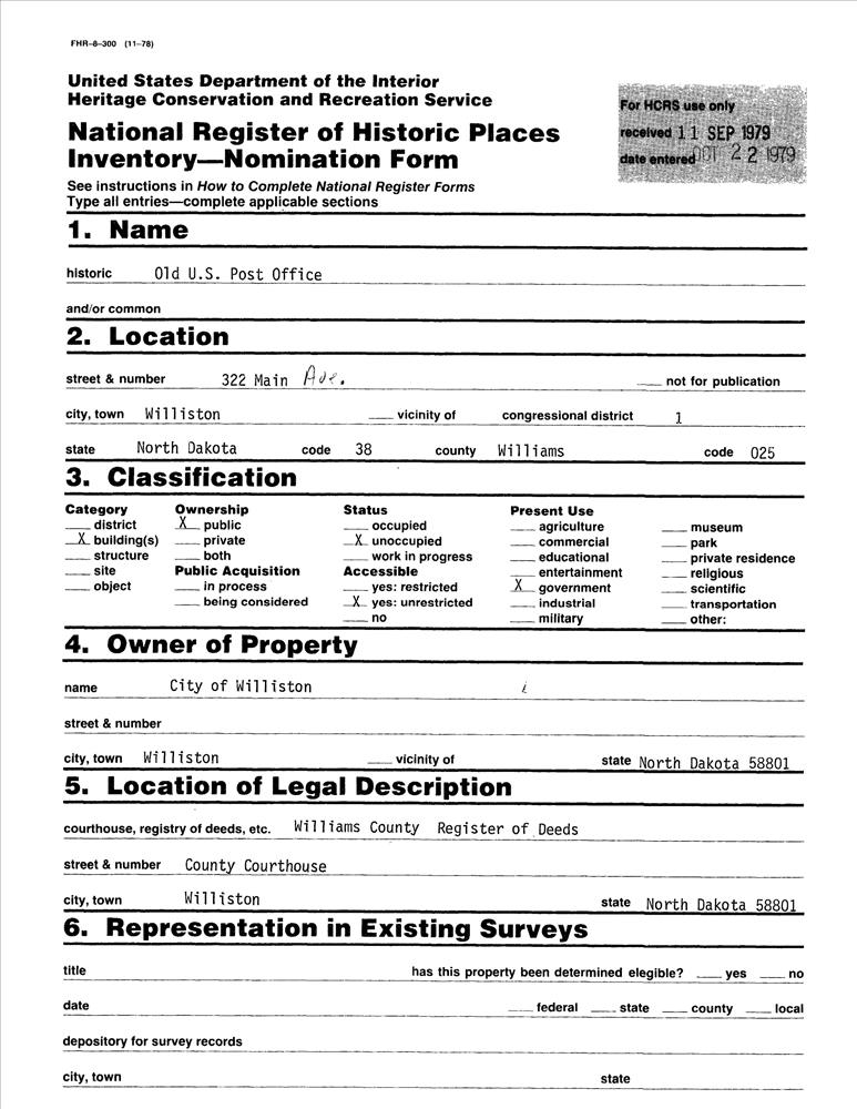 Williston ; 322 Main Ave.