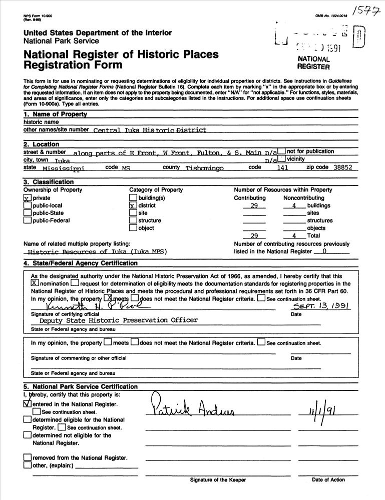 Iuka ; Roughly, Fulton and Main Sts. from Eastport St. to Southern Railway tracks and Front St. from Pearl to Fulton Sts.