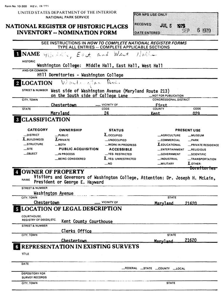 Chestertown ; Washington Ave