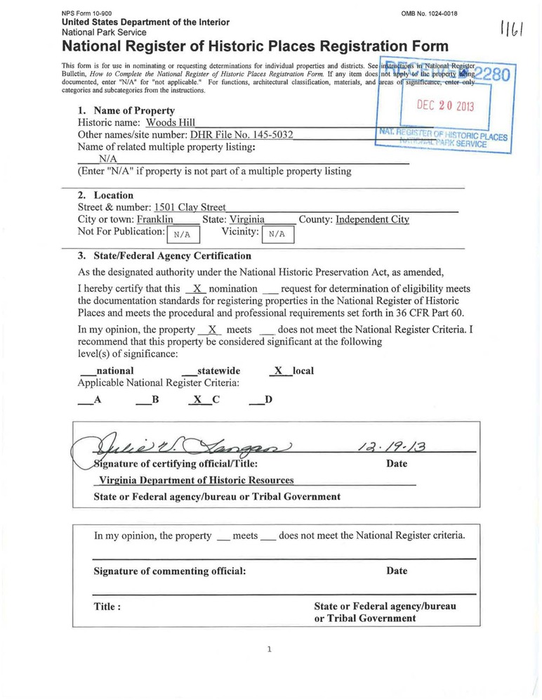 Franklin (Independent City) ; 1501 Clay St.
