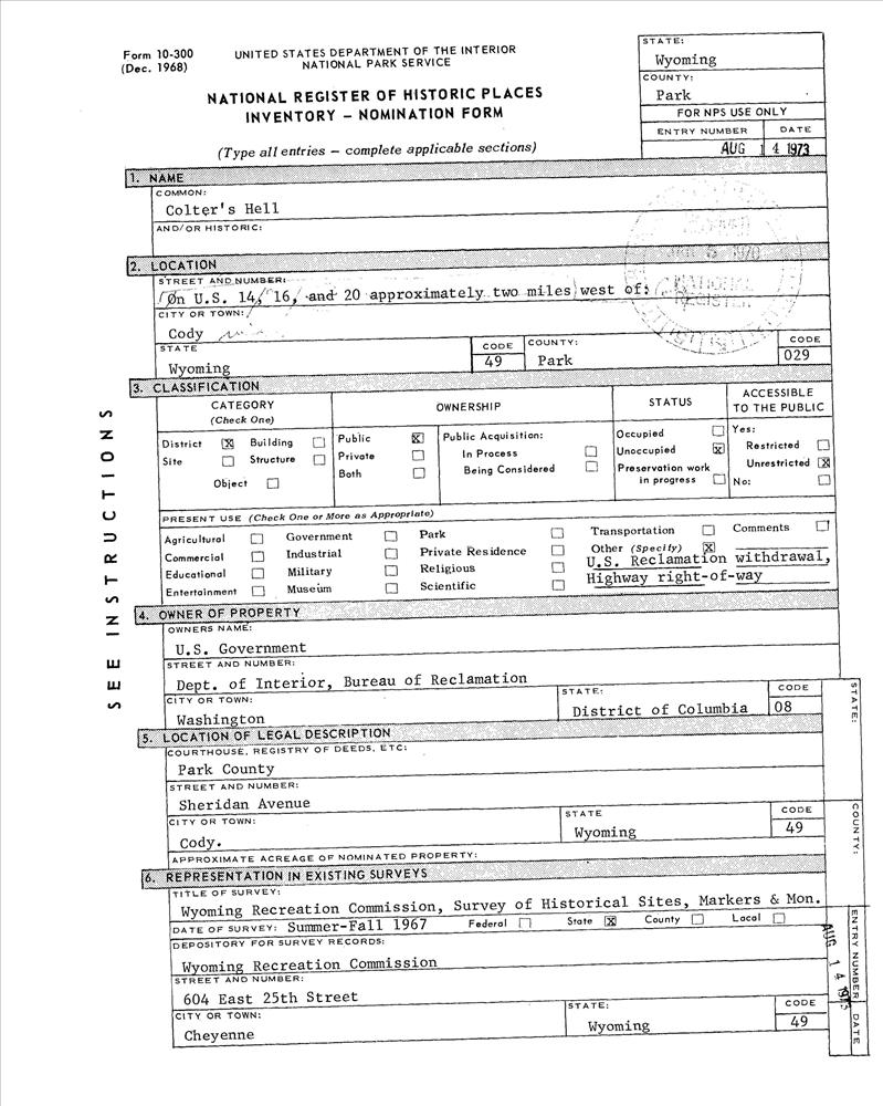 Cody ; W of Cody on U.S. 14