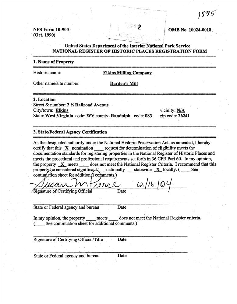 Elkins ; 2 1/2 Railroad Ave.