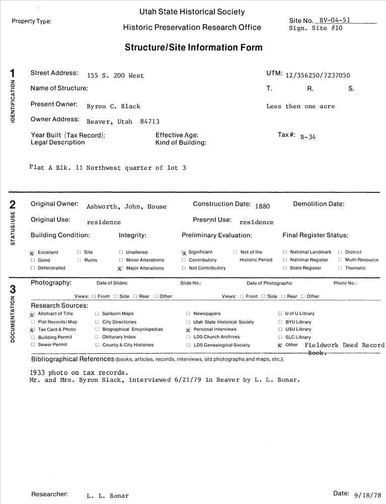 Beaver ; 1105 S. 1st West