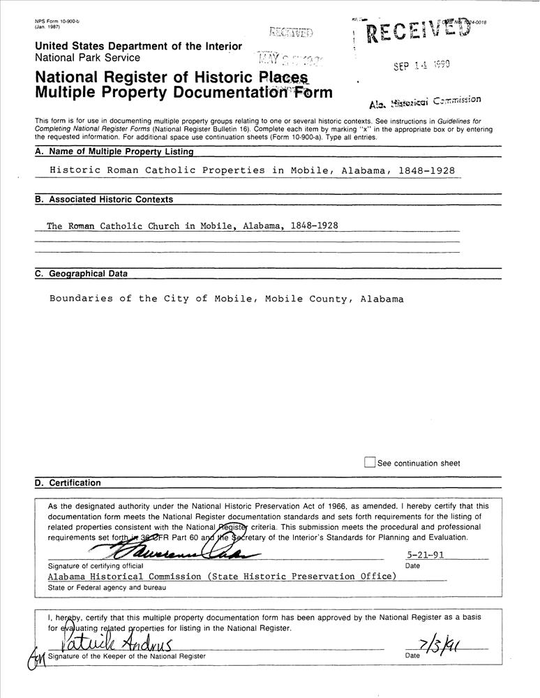 Historic Roman Catholic Properties in Mobile MPS