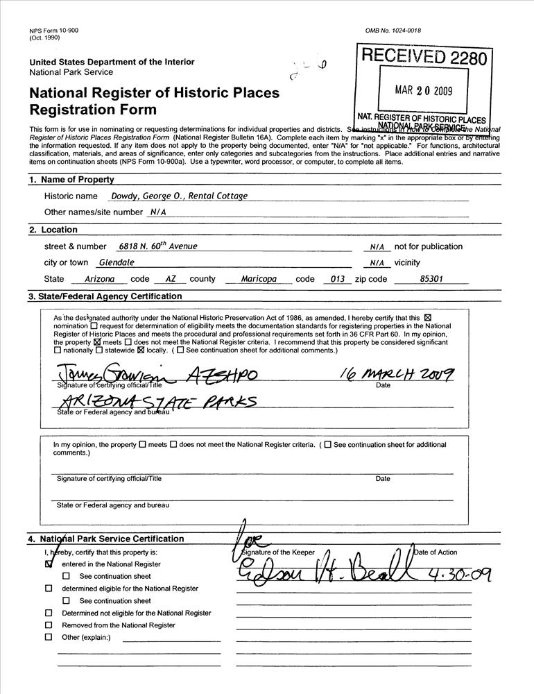 Dowdy, George O., Rental Cottage