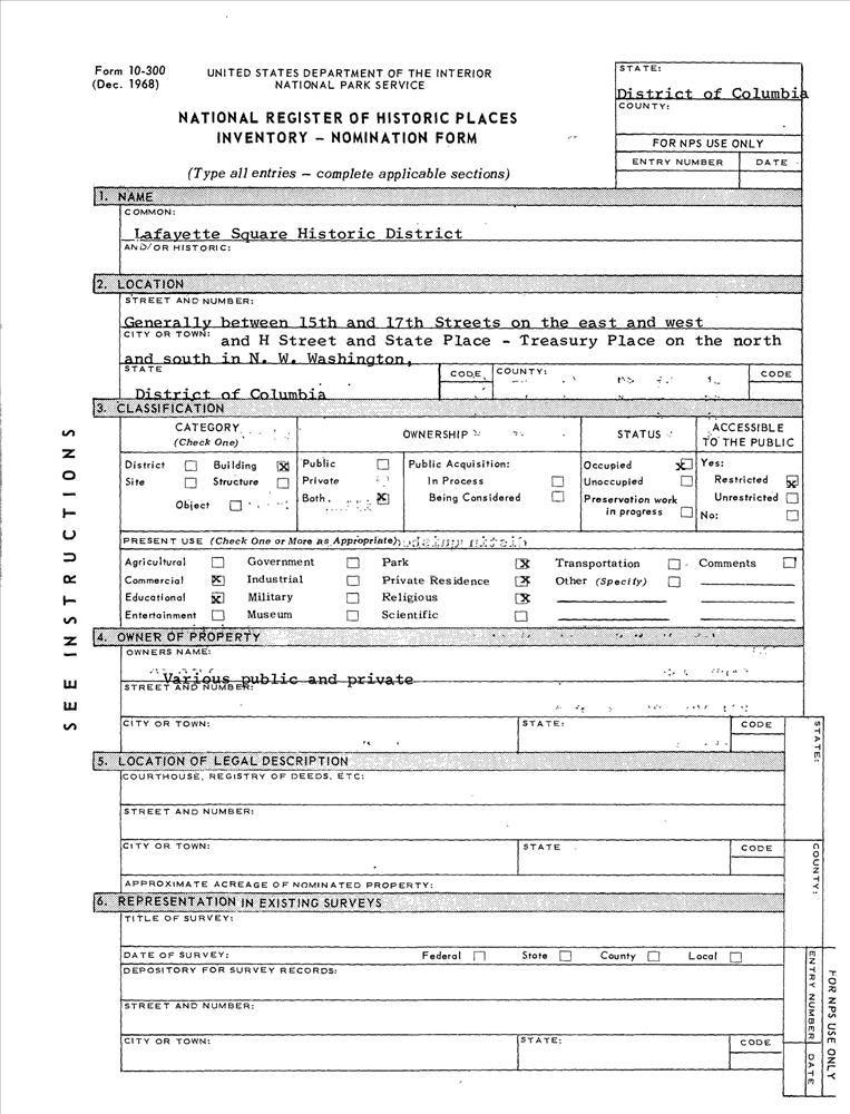 District of Columbia ; District of Columbia ; Washington ; Roughly between 15th and 17th Sts. and H St. and State and Treasury Places, exclusive of the White House and its grounds