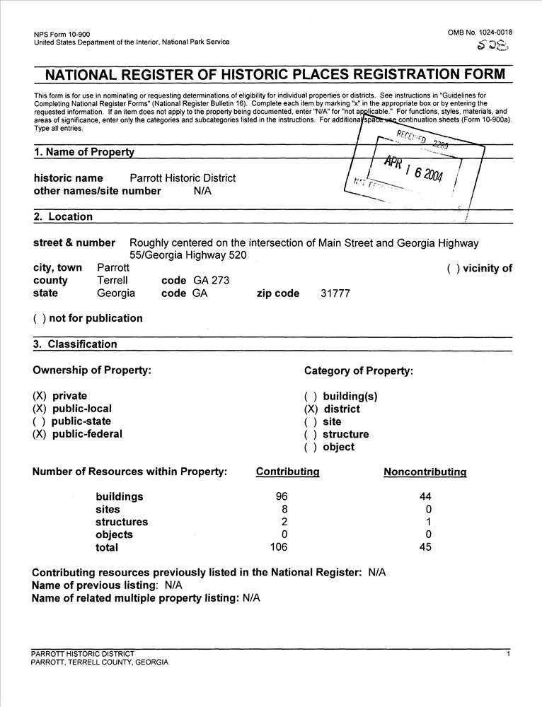 Parrott ; Roughly centered on the jct. of Main St. and GA Hwy 55/GA Hwy 520