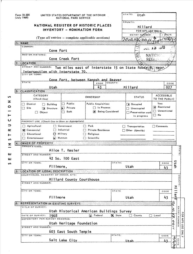Cove Fort ; 2 mi. E of I-15 on UT 4
