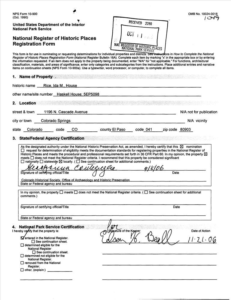 Colorado Springs ; 1196 N. Cascade Ave.