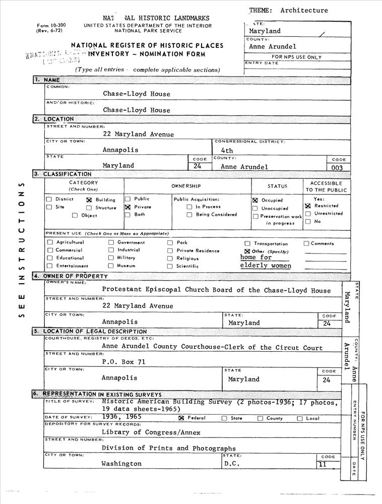 Annapolis ; 22 Maryland Ave.
