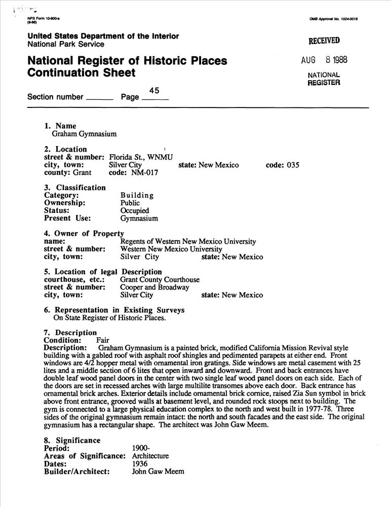 New Mexico Campus Buildings Built 1906--1937 TR