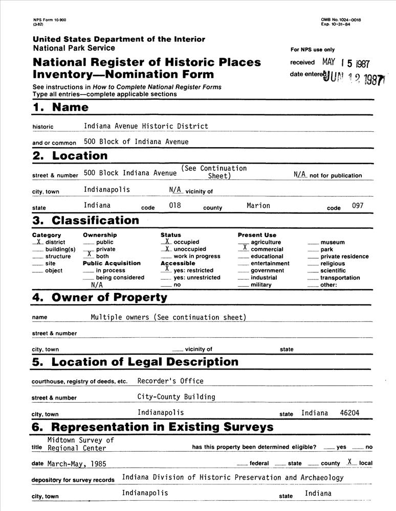 Indianapolis ; 500 blk. of Indiana Ave. between North St., Central Canal, Michigan, and West Sts.