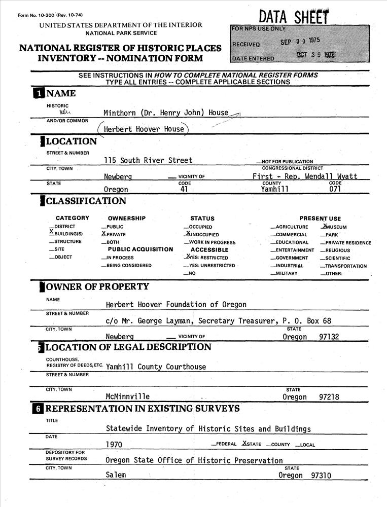 Minthorn, Dr. Henry J., House (Herbert Hoover House)