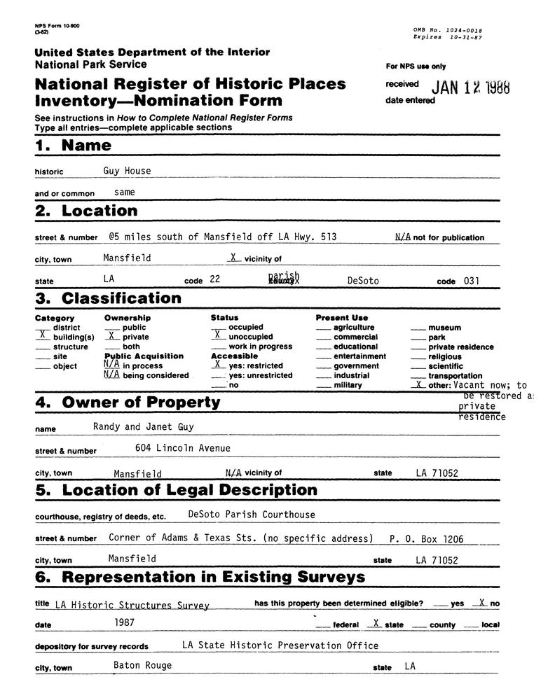 Mansfield ; Off LA 513, 5 mi. S of Mansfield