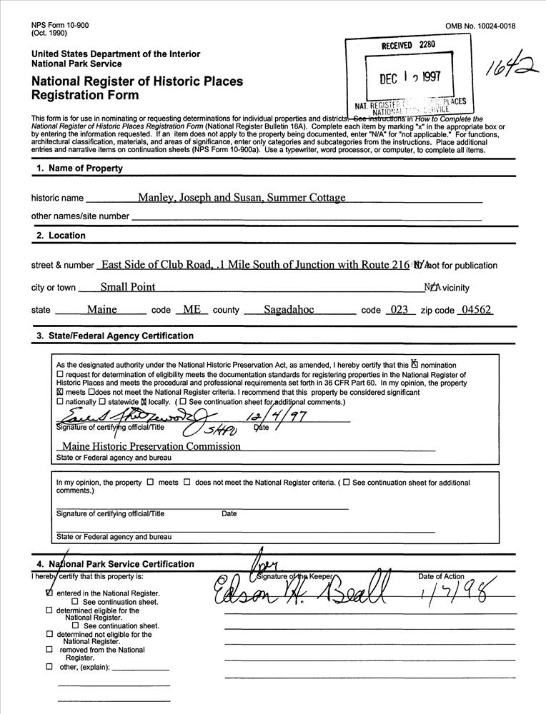 Manley, Joseph and Susan, Summer Cottage