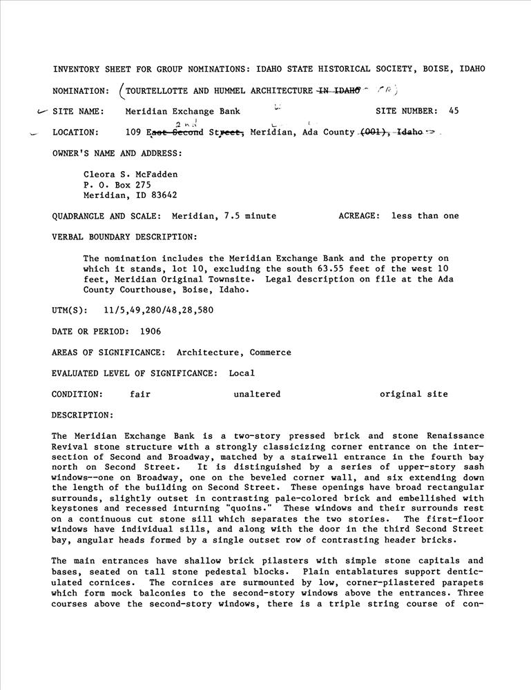 Meridian ; 109 E. 2nd St.