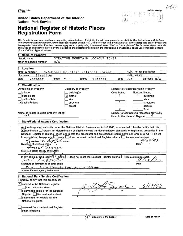 Stratton ; Summit of Stratton Mountain, Green Mountain NF