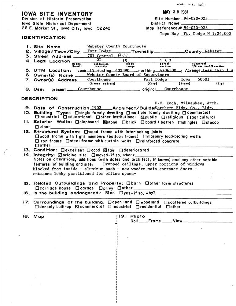 Fort Dodge ; 701 Central Ave.