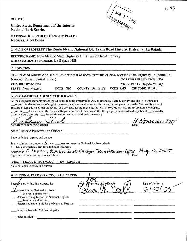 Route 66 and National Old Trails Road Historic Distric at La Bajada