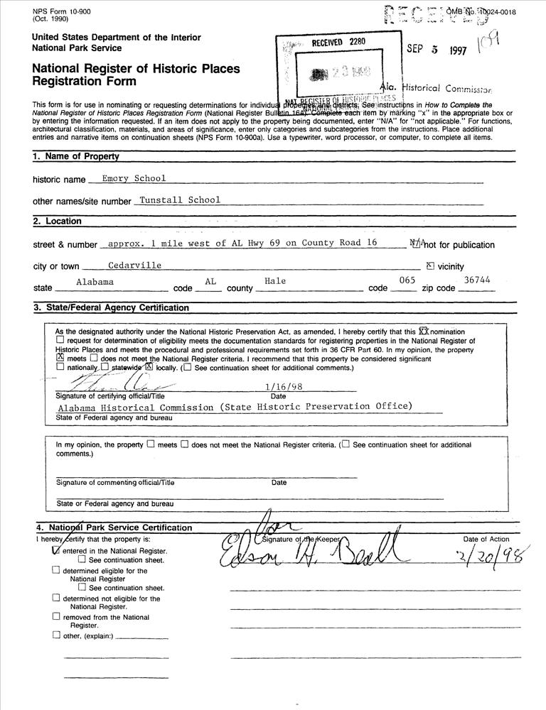 Cedarville ; Co. Rd. 16, approx. 1 mi. W of jct. AL 69 and Co. Rd. 16