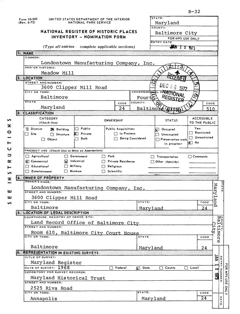 Baltimore (Independent City) ; 3600 Clipper Mill Rd.