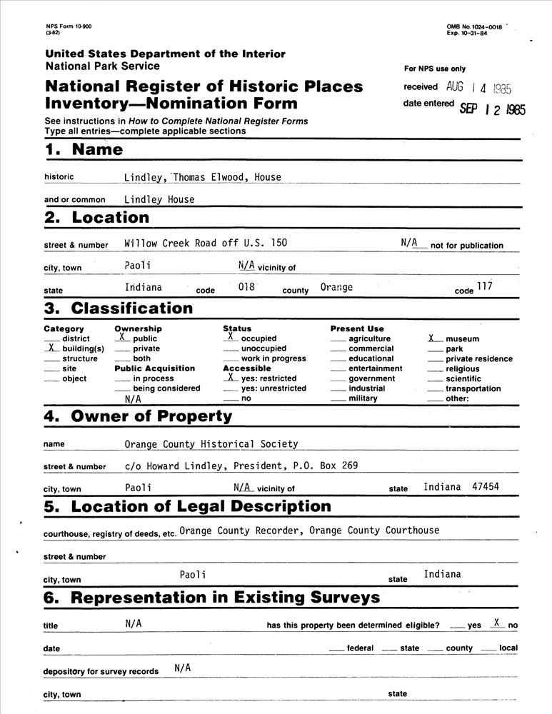 Lindley, Thomas Elwood, House
