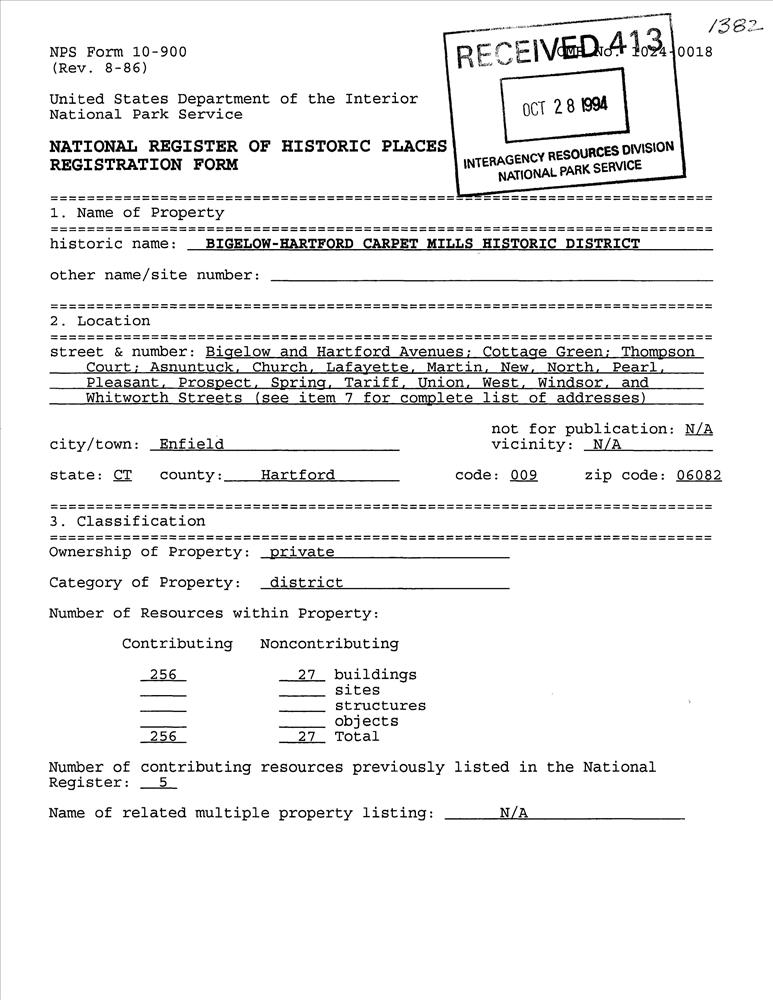Enfield ; Roughly bounded by Lafayette St., Hartford Ave., Alden Ave., Pleasant, High, Spring, South and Prospect Sts.