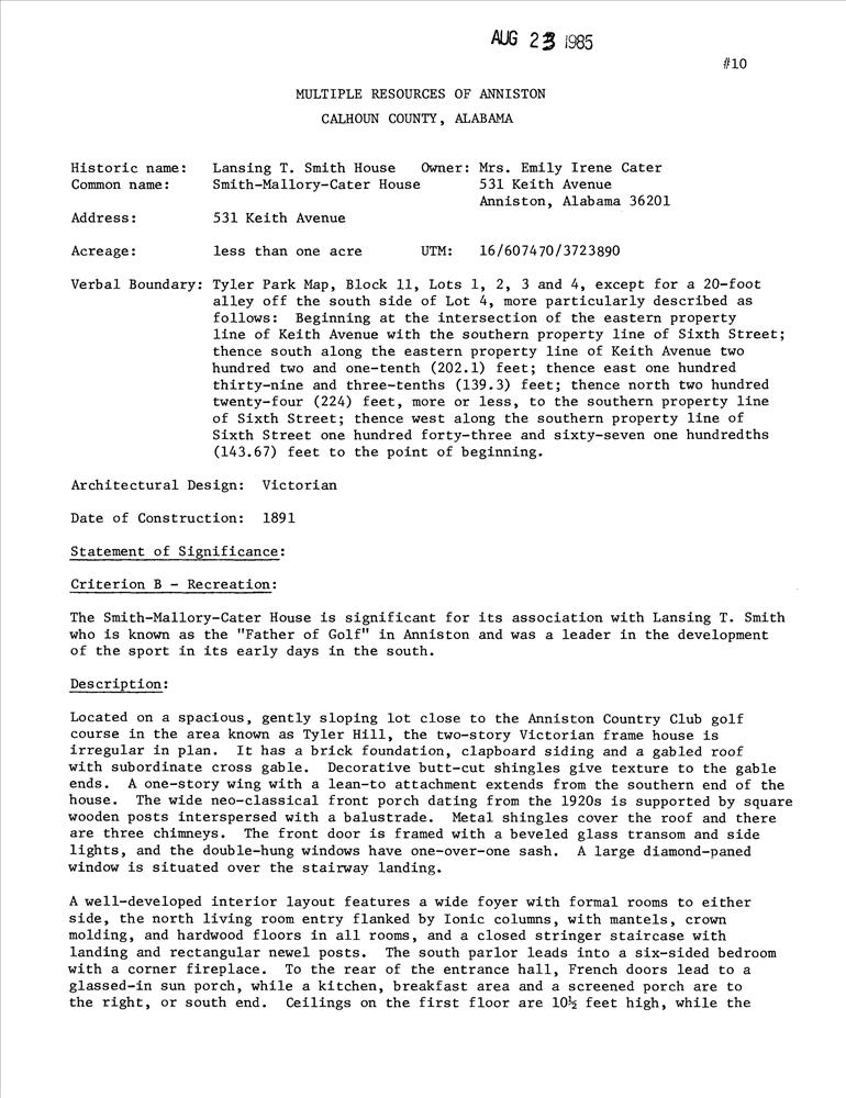 Anniston ; 531 Keith Ave.