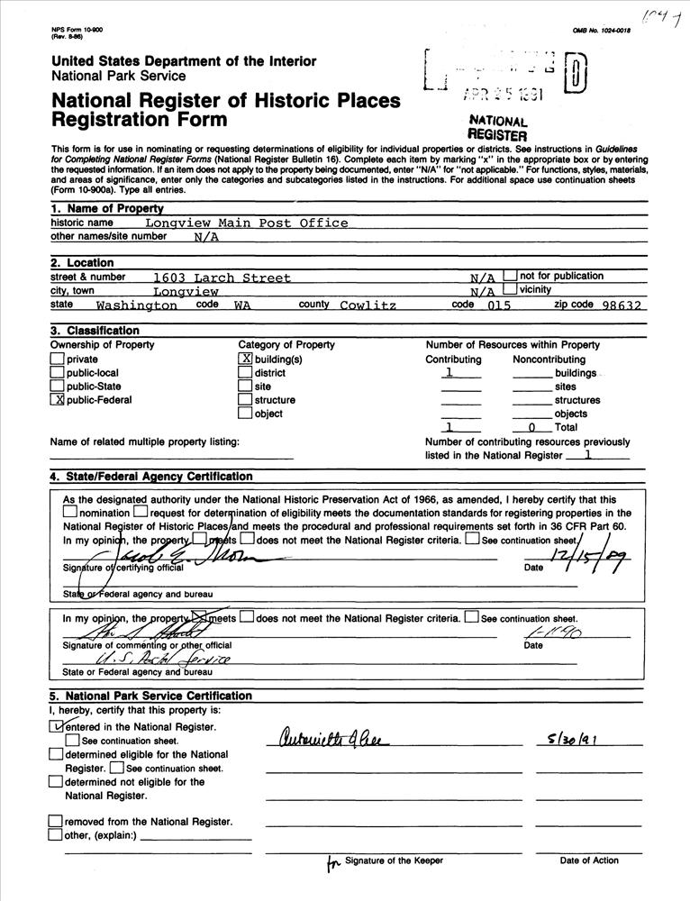 Historic US Post Offices in Washington MPS
