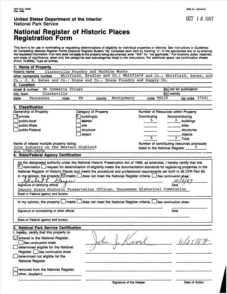 Iron Industry on the Western Highland Rim 1790s--1920s MPS