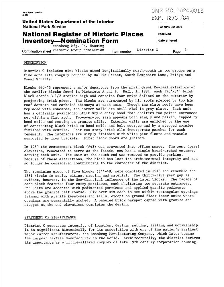 Amoskeag Manufacturing Company Housing Districts TR