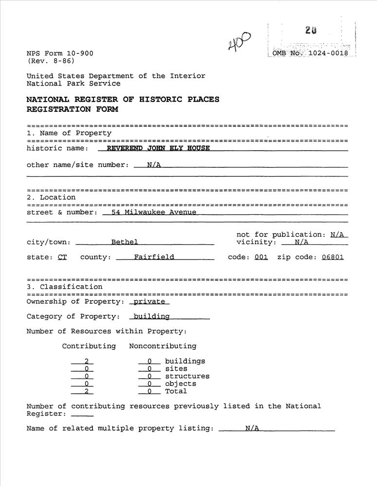Ely, Rev. John, House