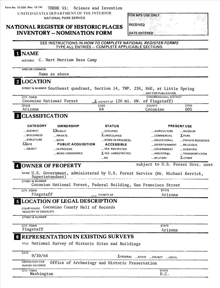 Flagstaff ; 20 mi. NW of Flagstaff in Coconino National Forest