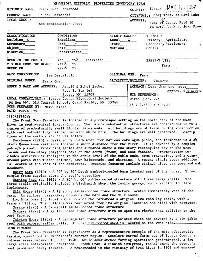 Gran, Frank, Farmstead