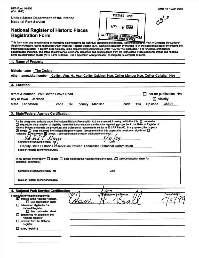 Jackson ; 260 Cotton Grove Rd.