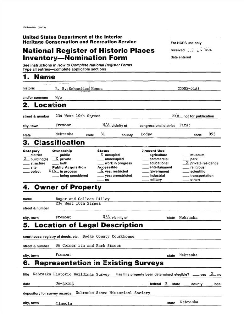 Schneider, R. B., House